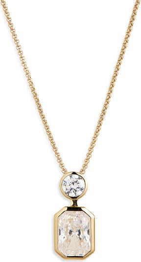 Add elegant sparkle to your look with this hand-polished necklace showcasing bezel-set cubic zirconia in gorgeous round and emerald cuts.