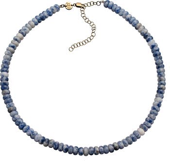 Strung with ocean-blue beads that recall seaside escapes, this necklace strikes a balance between laid-back charm and polished sophistication.
