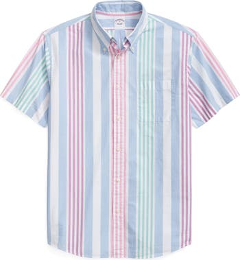 Friday Regular Fit Stripe Short Sleeve Cotton Poplin Button-Down Shirt