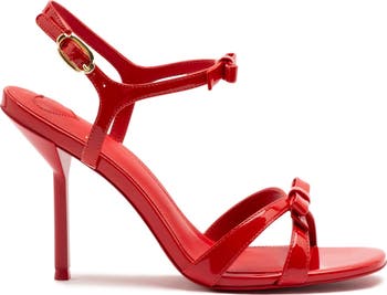 One of our sexiest heels to date, the Brooks isn't messing around, with a sky high heel, surrealist bow detail, eye-catching patent leather, and adjustable ankle strap that fastens in front for added allure. She's barely there but still bold—the one that you'll be grabbing for as Summer soirées get into full swing. Scarlet Soft patent leather Open round toe Adjustable ankle straps 3.8 inch stiletto heel Finely crafted leather sole for support, durability, and comfort Insole with memory foam cushion and hot stamp logo Handmade in Brazil