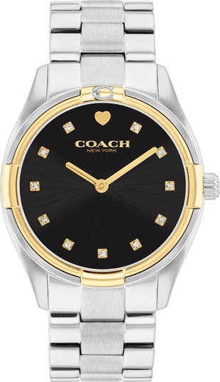 Noon and midnight will forever pluck at your heartstrings wearing this bracelet watch that balances elegance and charm between the 11 crystal hour markers and the heart icon in the 12 position.