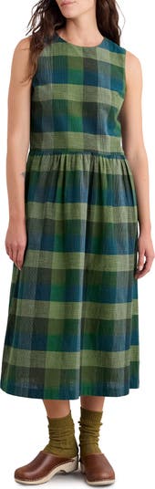 Cut from breezy organic cotton, this sleeveless maxi is covered in polished checks and made with soft gathers to enhance the flared skirt.