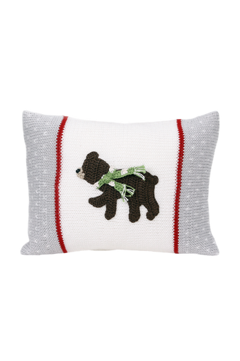 Featuring an adorable bear wrapped in a cozy scarf, this pillow offers a delightful combination of warmth and holiday spirit. The detailed knitwork on the bear, set against a soft white and grey background with red accents, brings a playful yet refined element to your holiday decor. Crafted from high-quality cotton yarn, this pillow adds a cozy, seasonal flair to any room. Whether placed on a couch, chair, or bed, its vibrant colors and unique design are sure to catch the eye and bring holiday cheer to your space.