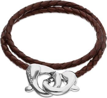 Brown double leather bracelet with sterling silver plated carabiner detail, the double brown leather represents stability, and the linked silver detail celebrates the union that multiplies strength.