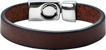 Plain brown leather bracelet with polished sterling silver-plated end caps and a minimal flat profile.