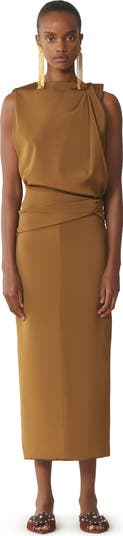 The subtle, delicate draping of this dress evokes the designs imagined by Jeanne Lanvin for her Haute Couture creations. Featuring a stand-up collar, it creates both an elegant and modern silhouette. Made from stretch viscose, it offers extra comfort while avoiding creases, shaping a feminine and sophisticated look.