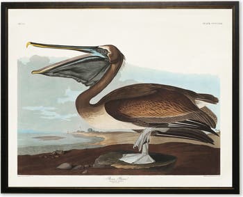 This vintage-inspired print, framed in a black and copper wooden frame, features a brown pelican. Sized at 18 inches by 24 inches, this made in the USA frame makes for a beautiful addition to any wall.