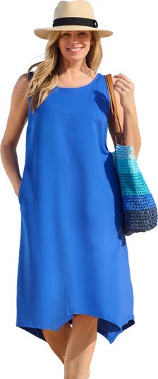 We've raised the chill factor on our most-loved cover up with this collaboration with brrr°. With its sharktail hem and A-line shape, our cover up is versatile enough to go from sunning on the shore to lunch on the boardwalk to cocktails before dinner. Plus, brrr°'s "Triple Chill Effect" combines enhanced cooling, hyper- and quicky-drying fibers to keep you comfortable all day. Scoopneck. Side pockets.