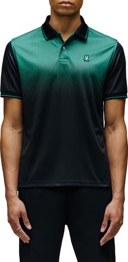 A honeycomb ombré fade distinguishes a lightweight knit polo that's tipped with contrast, making it a sporty choice for active weekends.