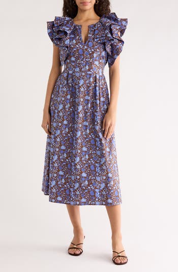 An abstract floral pattern adds a breath of fresh air to this retro-chic minidress complete with blouson sleeves.