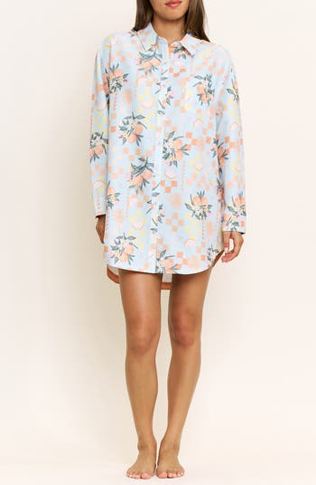A bold print defines a classic button-up sleep shirt upgraded in an oversized fit and supersoft knit.