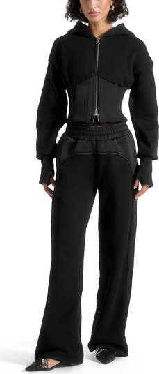 Merging casual ease with structured design, this corset hoodie offers a modern take on everyday comfort. Ribbed corset detailing sculpts a defined silhouette, while contrasting fabrics add depth and an elevated edge. Crafted from a high-cotton fabric blend for breathability and softness, it’s finished with ribbed cuffs with thumbholes and a dual-zip, delivering both function and versatile styling.