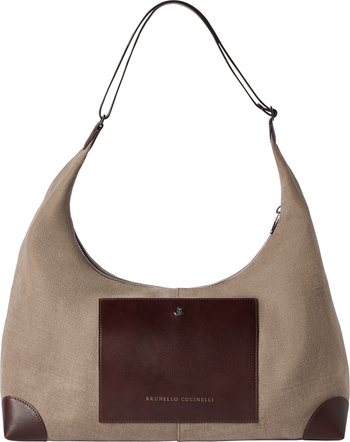 The canvas is made of a linen and cotton blend and is enriched with a special finish that makes it water-resistant, while at the same time enhancing the yarn’s natural irregularity. The burnished calfskin details enrich the accessory with touches of nuanced color thanks to special artisanal craftsmanship with hand finishing and brushing. The lining protects against possible contact with water.
