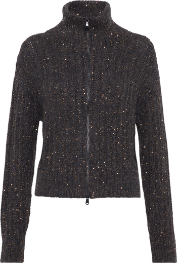 - Two-way zip closureFunnel neckDrop shoulderWide sleeveRib knit