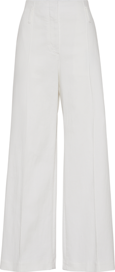 The stretch cotton denim is garment-dyed in the season’s delicate colors. A small percentage of spandex helps to make the fabric comfortable to wear.