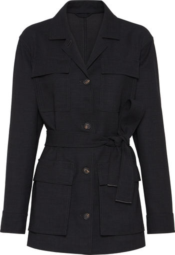 - Horn button closureUnlinedNotched lapelUpper patch pockets with flapPatch hand pockets with flapDetachable tie beltCuffs with horn buttonNickel-free monili decoration