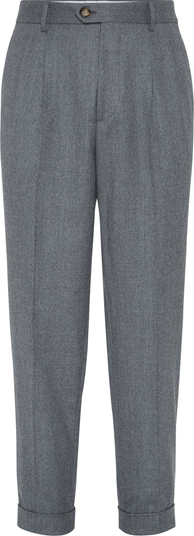- Zip closure with button, metal hook and backing buttonSlanted front pocketsDouble pleatBack welt pocketsCuffed hemLeisure fit: the rise and seat are soft and the proportions of the leg are tapered