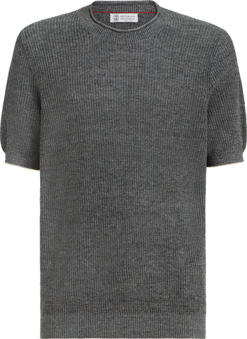 Brunello Cucinelli Linen and cotton T-shirt, Main, color, Dark Grey