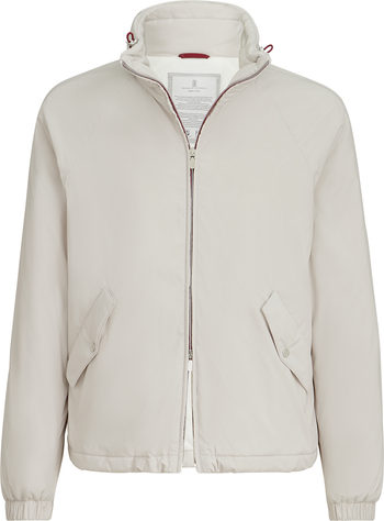 The nylon fabric features a silky, technical hand that enhances the garment’s essential, enveloping structure. Weightless to wear, it ensures absolute protection and comfort.
