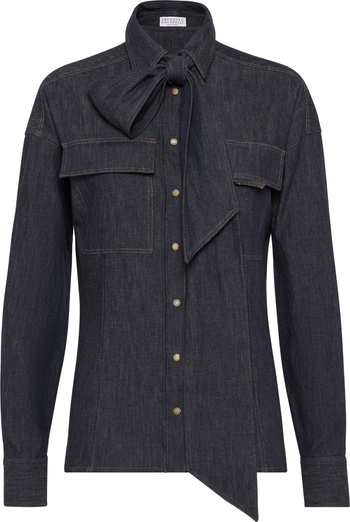- Horn snap closureClassic collarTwo patch chest pockets with flapSnap at cuffsRemovable square scarfNickel-free monili decoration