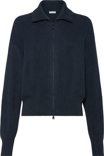 - Two-way zip closureHigh collarDrop shoulderWide sleeveEnglish rib