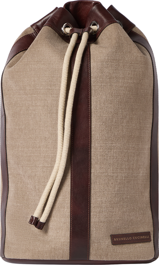 The canvas is made of a linen and cotton blend and is enriched with a special finish that makes it water-resistant, while at the same time enhancing the yarn’s natural irregularity. The burnished calfskin details enrich the accessory with touches of nuanced color thanks to special artisanal craftsmanship with hand finishing and brushing. The lining protects against possible contact with water.