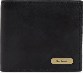 Aged-finish hardware and subtle diamond stitching elevate a slim bifold wallet featuring ample slots and RFID shielding to protect your personal info.