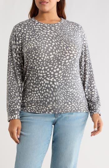 Have a (slightly) wilder weekend in this cozy brushed-jersey crewneck marked with a trend-right animal print.