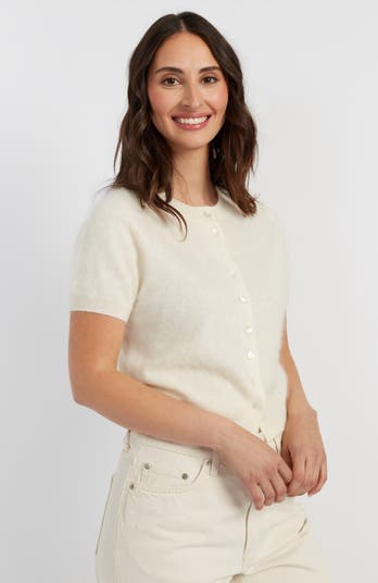 A fresh twist on a classic tee. This short-sleeved style is crafted from pure brushed cashmere for a soft, featherlight feel. Finished with a button-down front and ribbed trims, it’s a polished yet effortless piece that pairs perfectly with relaxed trousers or skirts.
