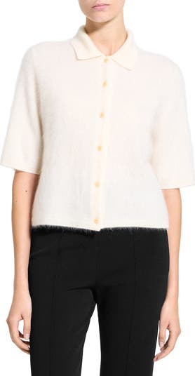Luxurious cashmere gets even more delightful in a short-sleeve polo-style cardigan finished with a brushed effect.