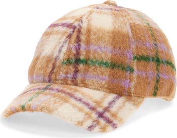 Cozy up while looking cool in this brushed baseball cap that's patterned with vibrant plaid and warmed with a bit of wool.