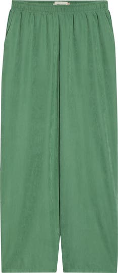 Texture leads the whole look as a brushed suede-like feel gives these wide-leg pants a rich hand. Cut relaxed and topped with an easy elastic waist, they're finished with a neat patch at the back that feels straight from another era.