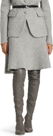 Brushed for a pleasingly shaggy texture, this skirt knit from a mohair-enriched wool blend features an A-line silhouette with an easy pull-on waist.