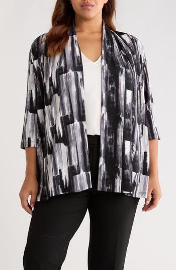 Finish lots of looks in a casually polished knit jacket offered in an eye-catching brushstroke print.