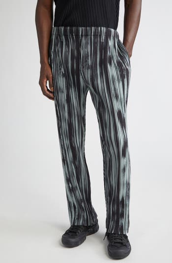 Issey Miyake’s signature garment pleating gives these pants soft structure and a kinetic drape that stays true from suitcase to sidewalk. The abstract motif reads like wet ink brushed in long strokes so the pattern moves as you do. The fabric resists creasing and packs small yet returns to form the moment it unfurls which makes them an easy choice for travel and every day.
