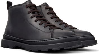 An extragrippy lug sole boldly grounds a sleek, streamlined boot given a sporty turn with sneaker-style lacing.