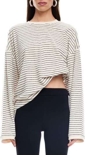 Pinstripes wrap around a cushy velour top made in an oversize silhouette to maximize your comfort during off-the-clock hours.