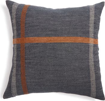 Bring the relaxed comfort of your favorite 5-pocket pair to your living room with this feather-plumped pillow covered with heavyweight hand-loomed linen with the look of washed denim.