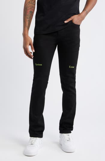 Graphic embroidered lettering charges these stretch-cotton skinny jeans bringing statement-driven streetwear energy to a streamlined silhouette.
