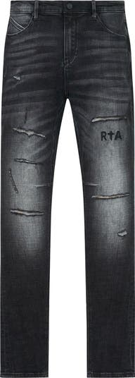 Threadbare rips and heavy fading add plenty of rebellious streetwear attitude to these low-stretch skinny jeans.