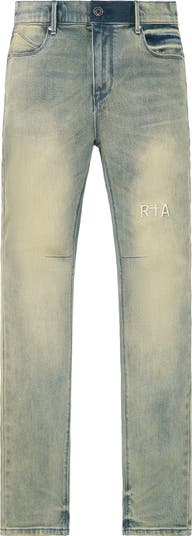 A tinted wash makes these low-stretch skinny jeans stand out, while dart details and logo embroidery amp the streetwear style.