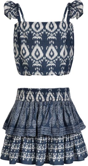 Meet the Bryn Skirt Set‚ the ultimate resort-ready outfit for tots and tweens! The Bryn Top features a sweet bubble top with adjustable narrow straps and flutter ruffle sleeves, perfect for all-day fun. The square neckline and versatile design allow the top to be worn two ways: push it up for a cute crop top and skirt look, or pull it down to meet the skirt's waistband, giving the appearance of a chic dress. The tiered skirt is an instant favorite with its smocked elastic waistband for comfort and—everyone’s favorite—pockets! Perfect for holding seashells, sunglasses, or snacks on your family's next vacation. This set is ideal for vacations, keeping your little one looking trendy while offering moms a gorgeous coordinated option with our matching Mommy & Me dress and skirt sets. Plus, both pieces can be worn separately for even more styling possibilities! Ready for their next adventure? This is the look they'll love wearing everywhere!