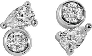 Sparkling stones accentuate the modern design of these dainty stud earrings that bring delicate shine to your lobes.