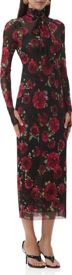 Allover polka dots and a tie neck bring plenty of retro charm to this long-sleeve mesh dress.