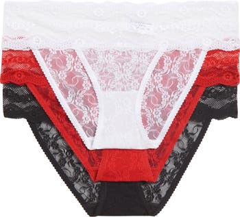 Made entirely from sheer floral lace, these bikinis feature a comfy wide waistband and chic scalloped edges.