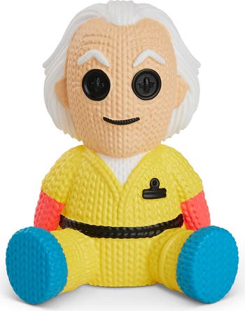 Approximately 5 inches tall and perfect for display or play Our friendly robots designed this figure to look like knit fabric at a glance, but it’s actually made of vinyl Signature vinyl tag on the figure, complete with barcode decal to resemble a sewn-in tag Blacklight Doc Brown never looked so unique!