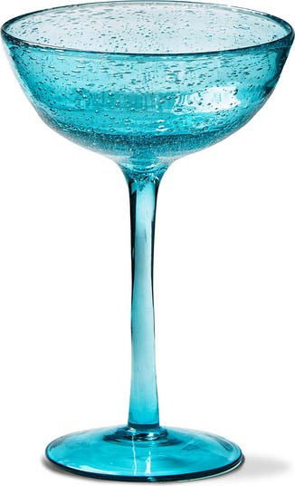 indulge in your favorite desserts or cocktails with the bubble glass coupe! mouth-blown by skilled artisans, this elegant coupe glass features a beautiful aqua tint and a captivating bubble design.
