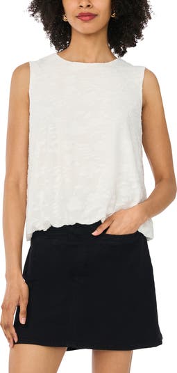 Textured blooms bring charm and dimension to this blousy sleeveless top finished with a bubbled hem.