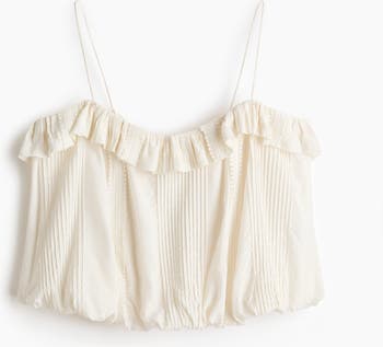 Short top in a viscose weave with lace insets. Straight, frill-trimmed neckline and spaghetti shoulder straps that tie at the back. Bubble hem for a puffy silhouette. Lined.