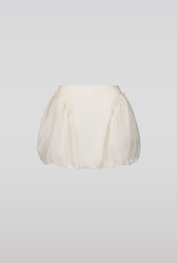 Bubble mini skirt with side pockets and diagonal seams at the hips. Color: cream. This product is true to size. Model is wearing S and is 170 cm.